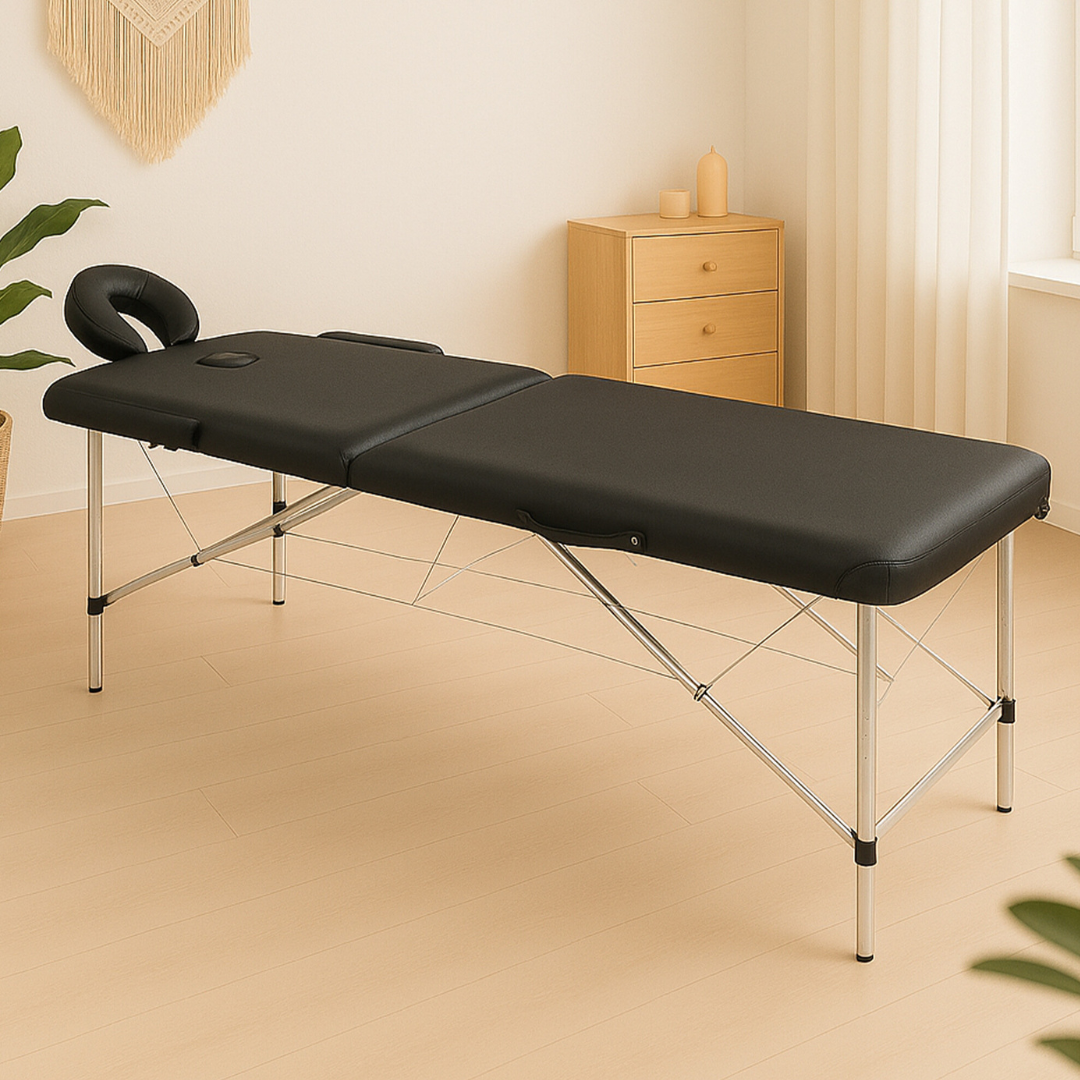Otkrijte savršen spoj elegancije i funkcionalnosti uz Premium Alu Masažni sto — dostupni u crnoj i beloj varijanti.