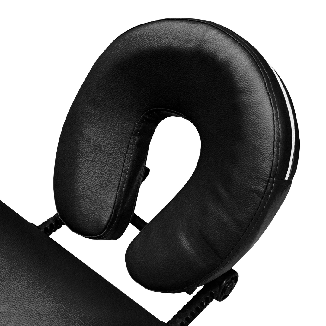 Dvo-delna masažna površina sa podesivim naslonom za glavu, otvorom za lice i naslonima za ruke — omogućava fleksibilnost i komfor za razne vrste tretmana.